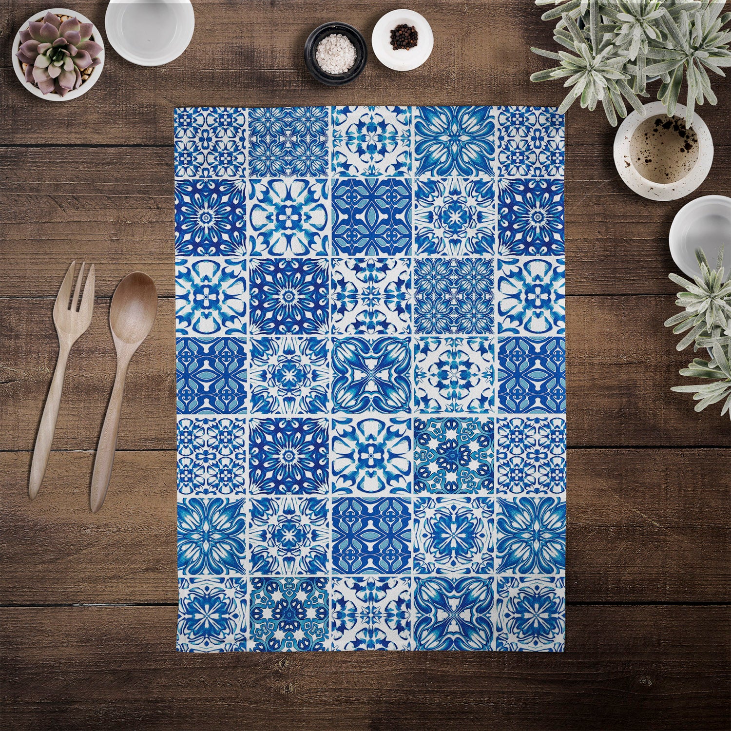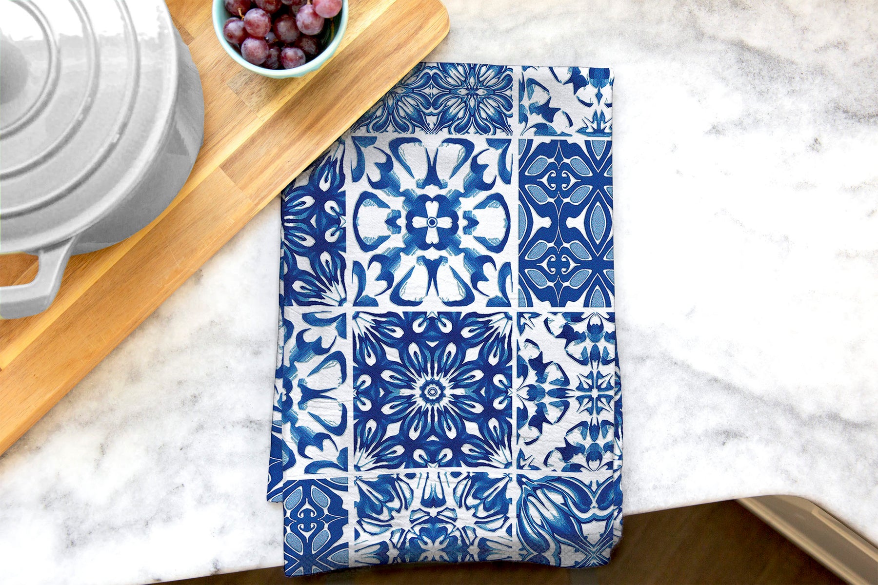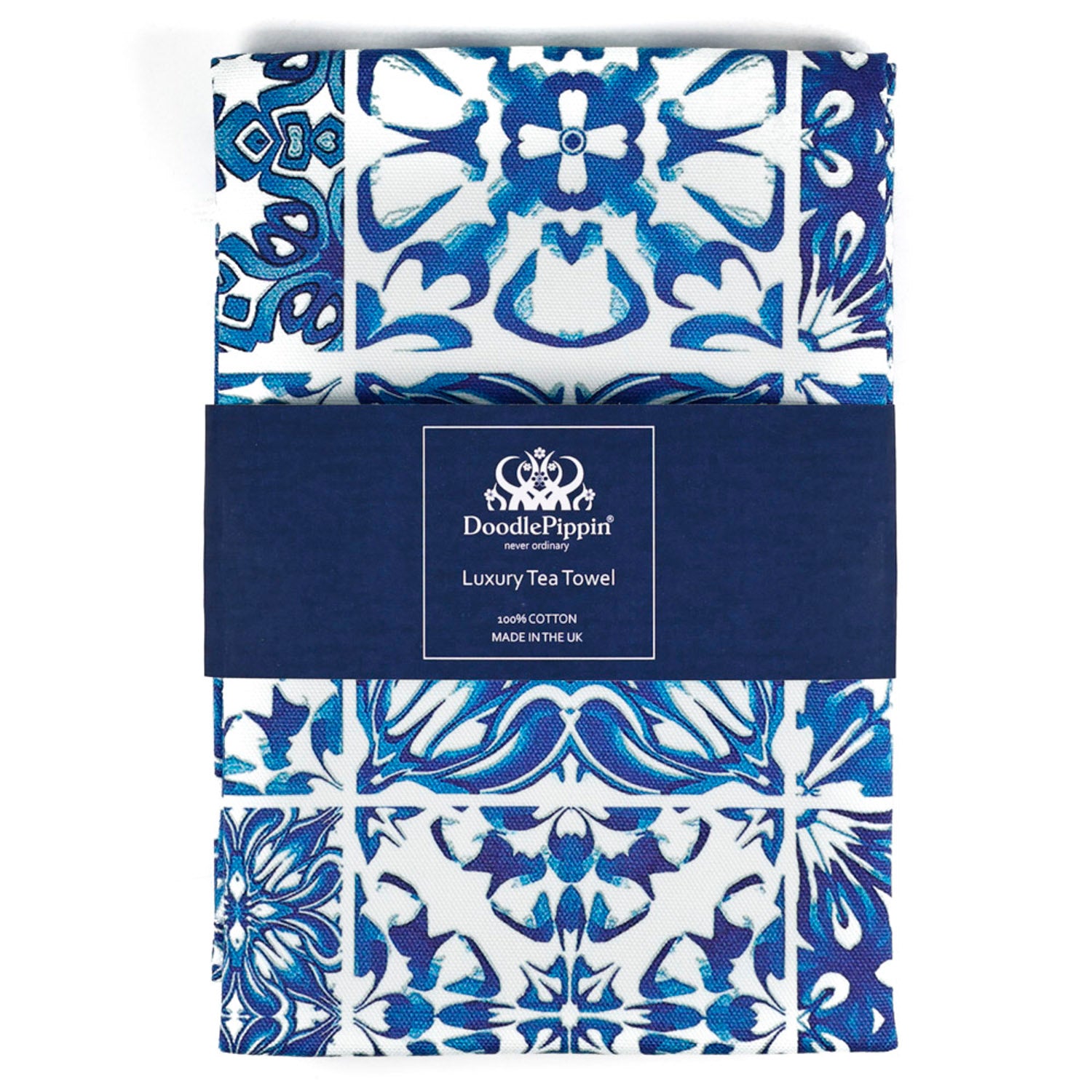 The lovely crisp blue and white pattern on these thick, high quality tea towels really reminds me of lots of little Delft blue and white tiles.