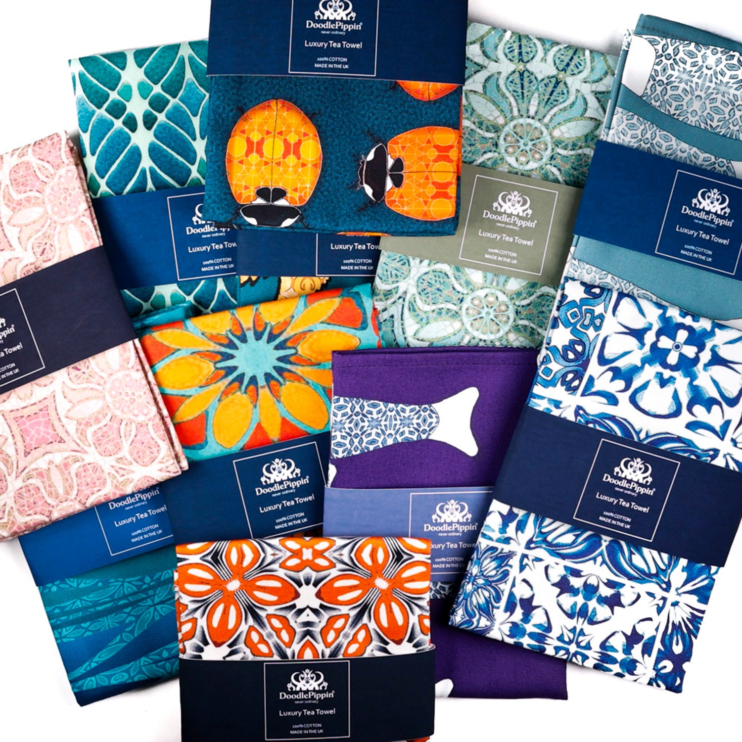 These tea towels are made from premium heavyweight 100% cotton canvas. Soft but strong, they dry quickly and get softer and more absorbent with every wash.