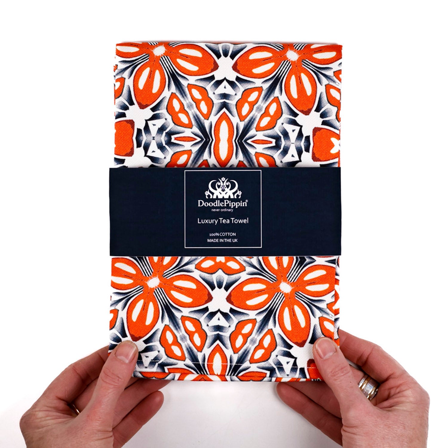 Lovely retro design in orange, grey, black and white on these tea towels. Perfect for a cool kitchen!