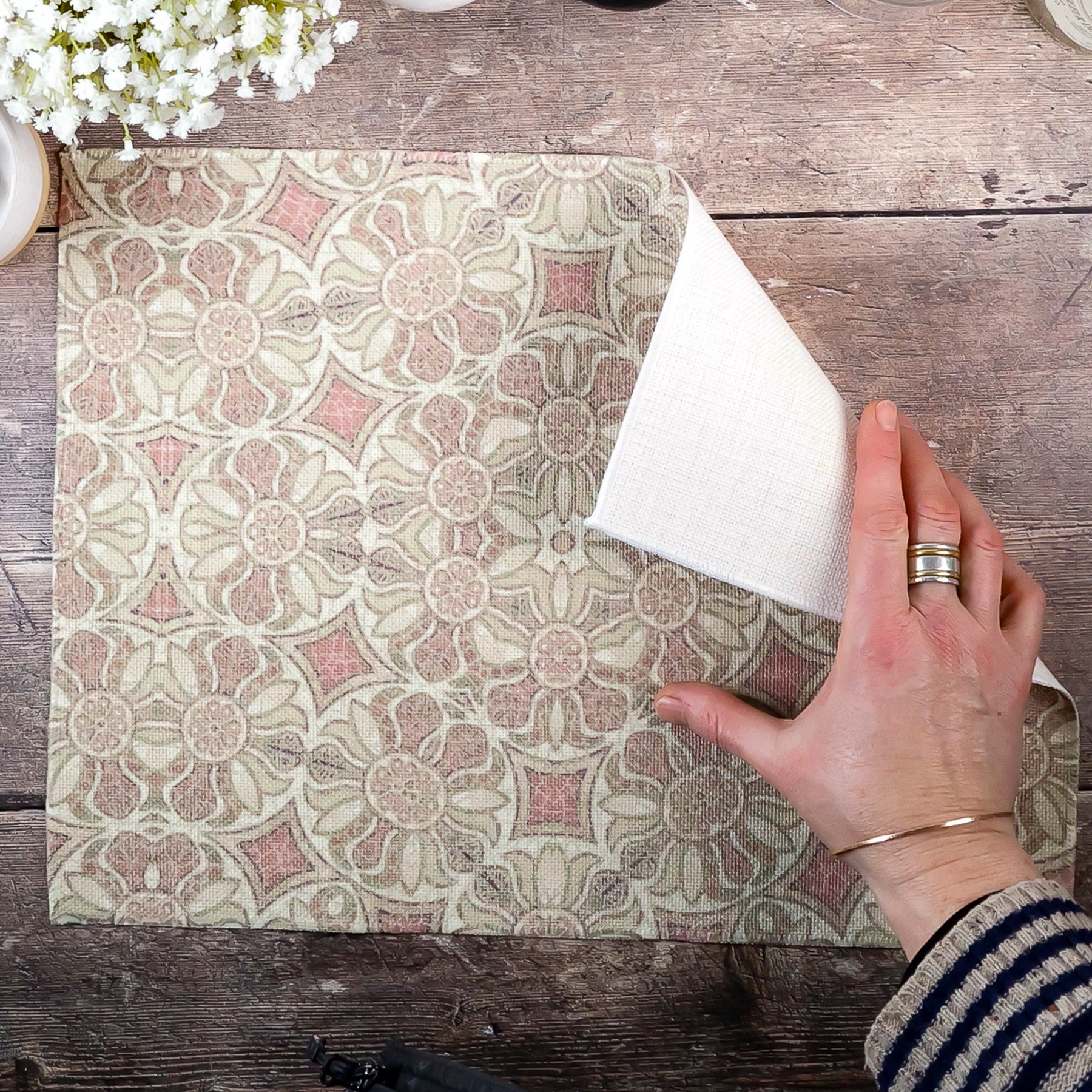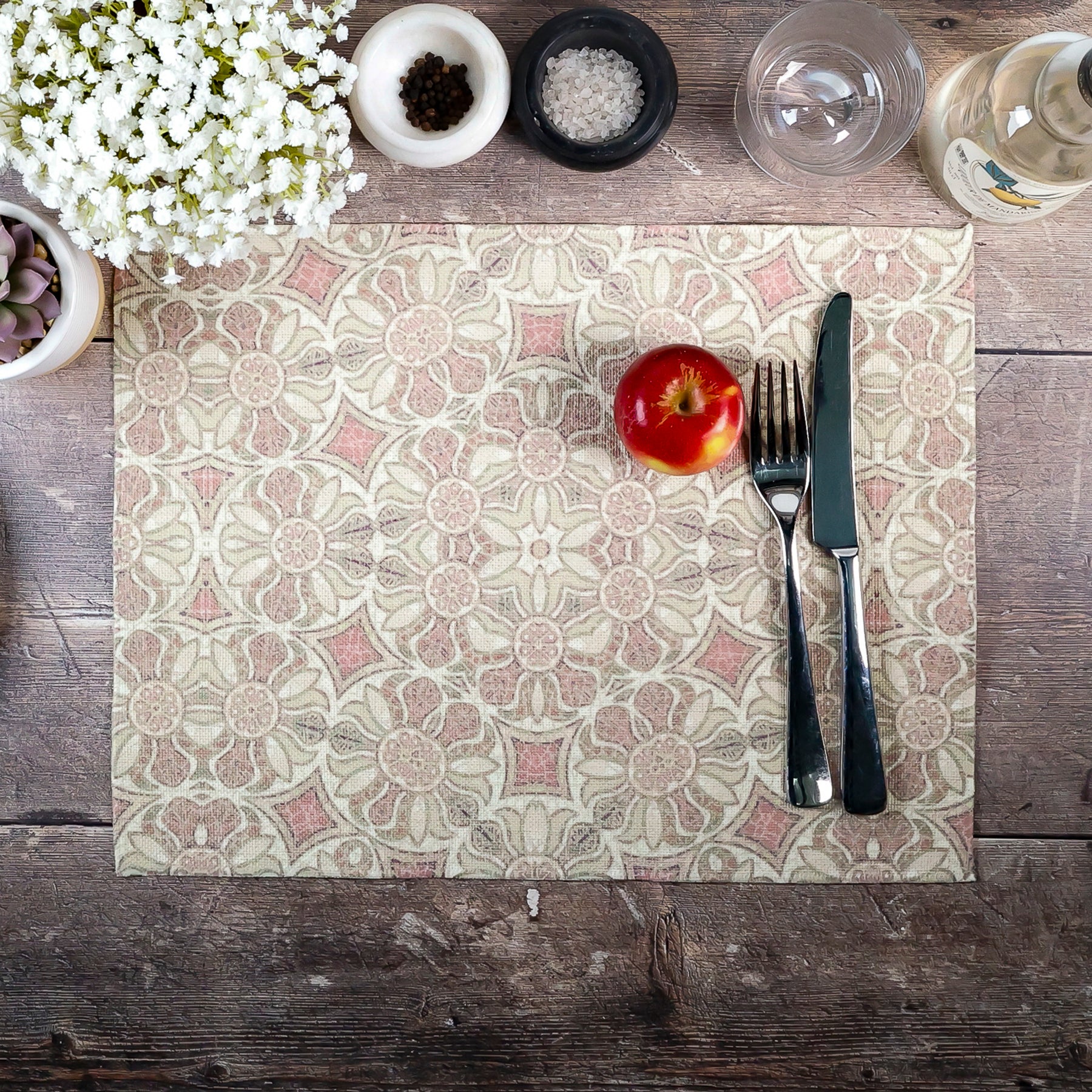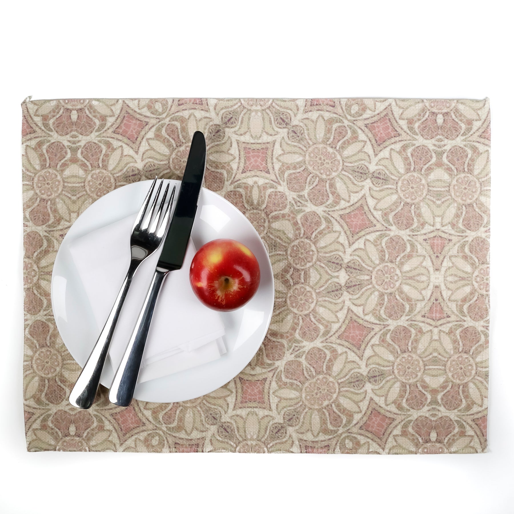 Add warmth and interest to any dining table with these stylish, machine-washable placemats in a lovely pale pink design.