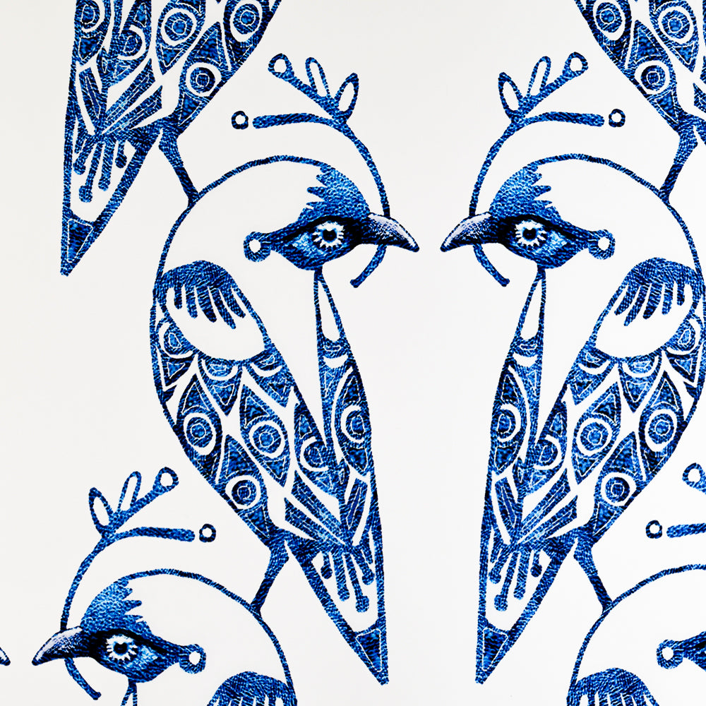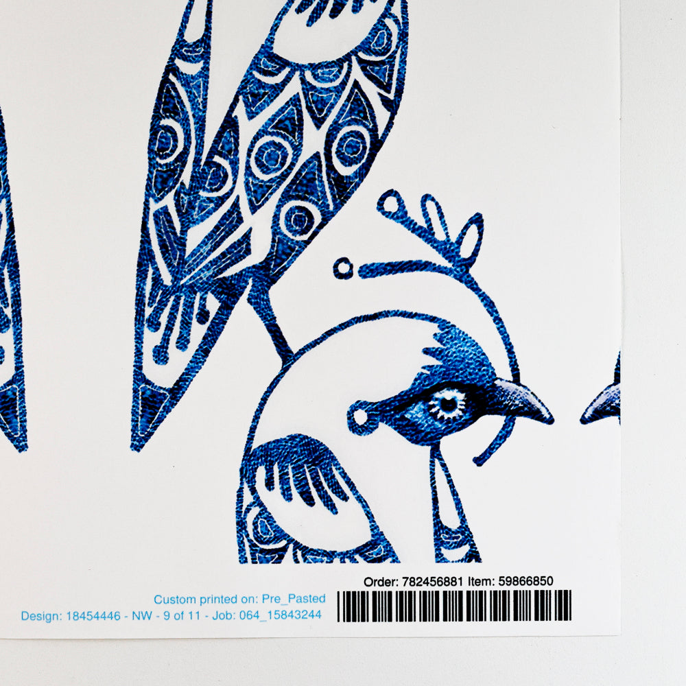 This is a 60cm x 30cm Pre-Pasted wallpaper sample in the Blue & White Lovebirds design.