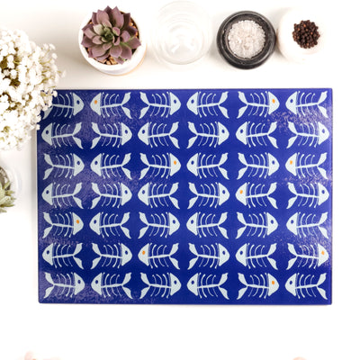 SALE - Large Rectangular chopping board with bonefish design on a textured surface.