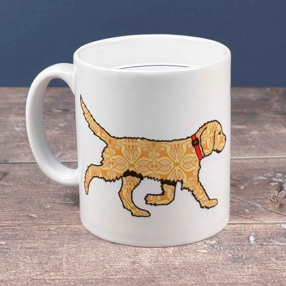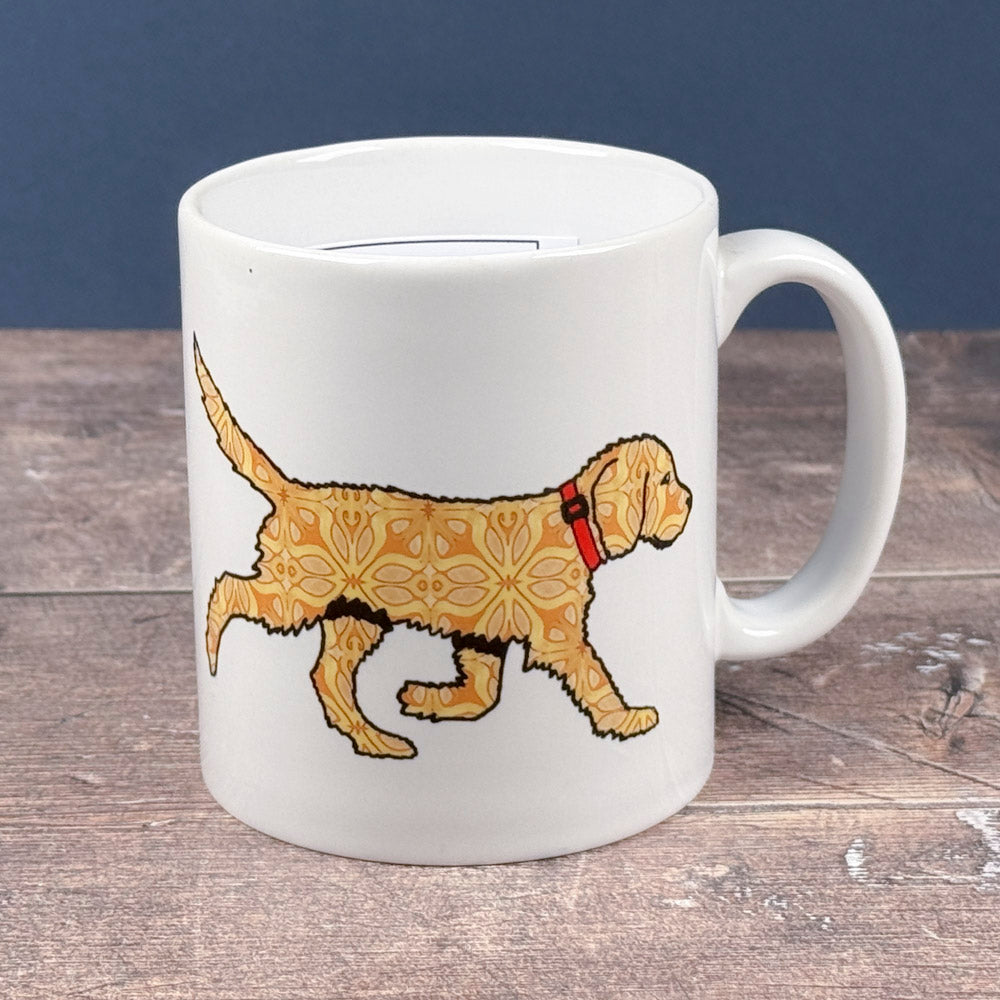 High quality white mug with a cute trotting pup design, handprinted in my studio in Reigate, UK.