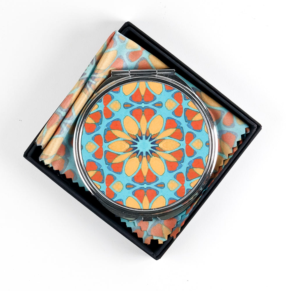 Essential small folding mirror, perfect for your handbag, makeup bag, gym or travel kit. The lid is decorated with a unique DoodlePippin millefiori design.