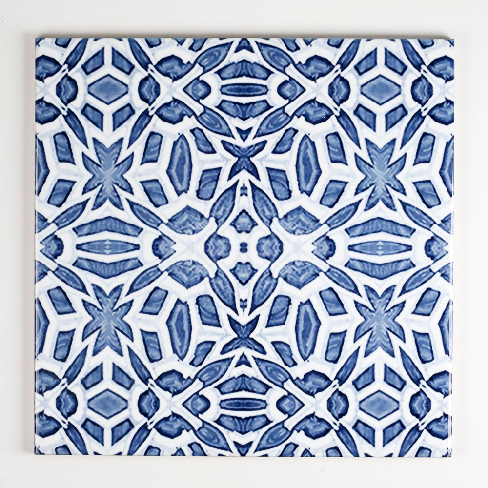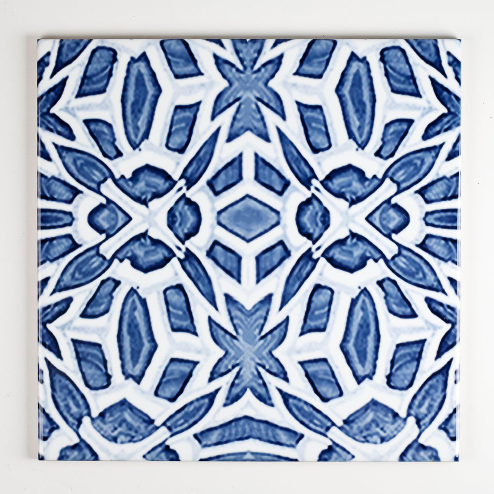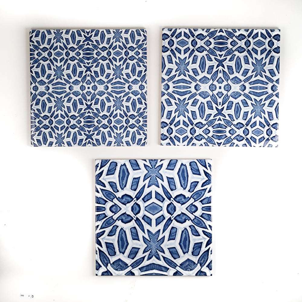 SALE - 3x 20cm Blue Tiles created as prototypes of our Moroccan fountain/iznik tile in a variety of scales (this design is also referred to as Tudor Rose in some of our listings - just to keep you guessing!)...