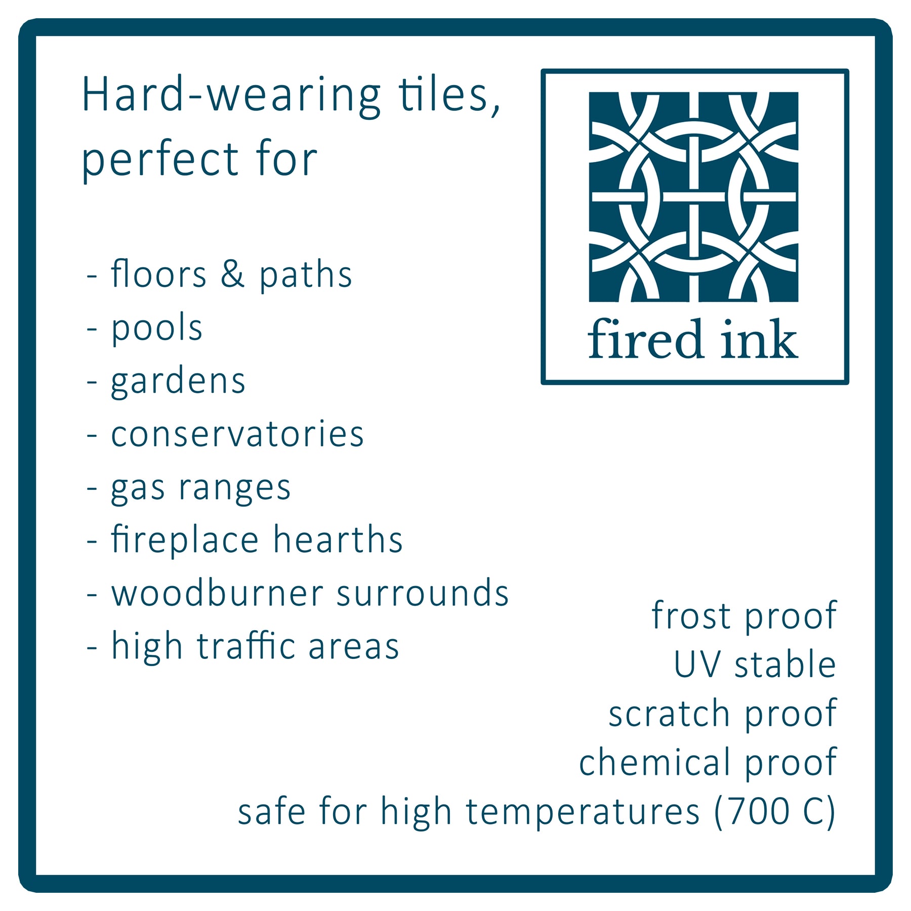 The FIRED INK finish is perfect for anywhere you need a scratch-proof and heat-proof tile.
