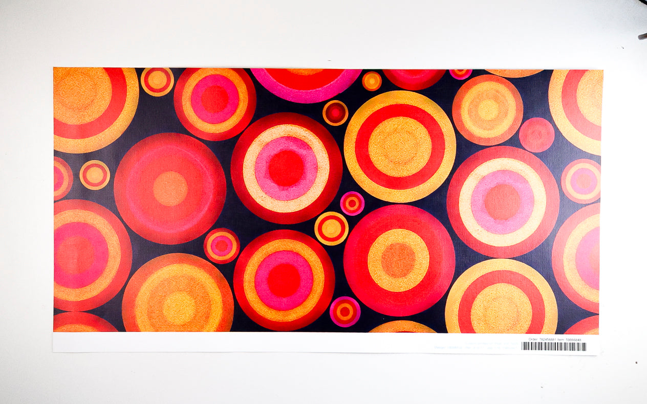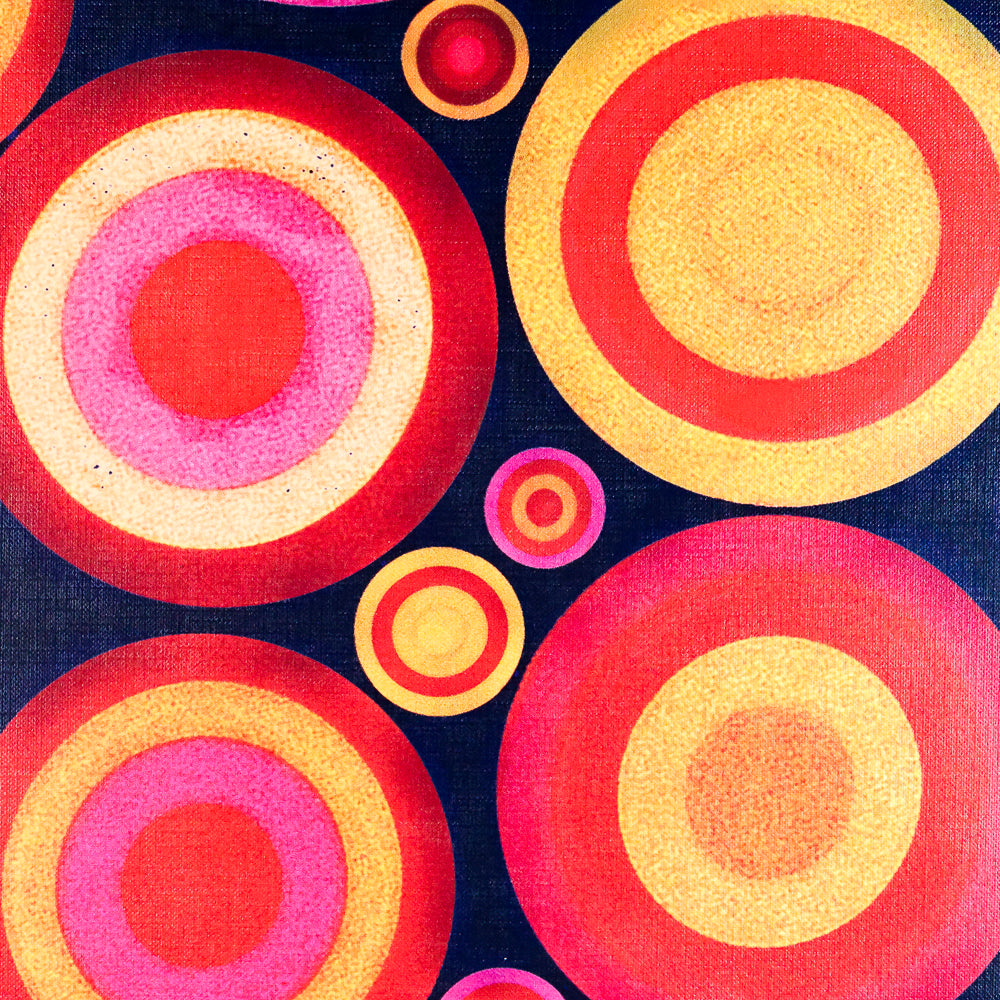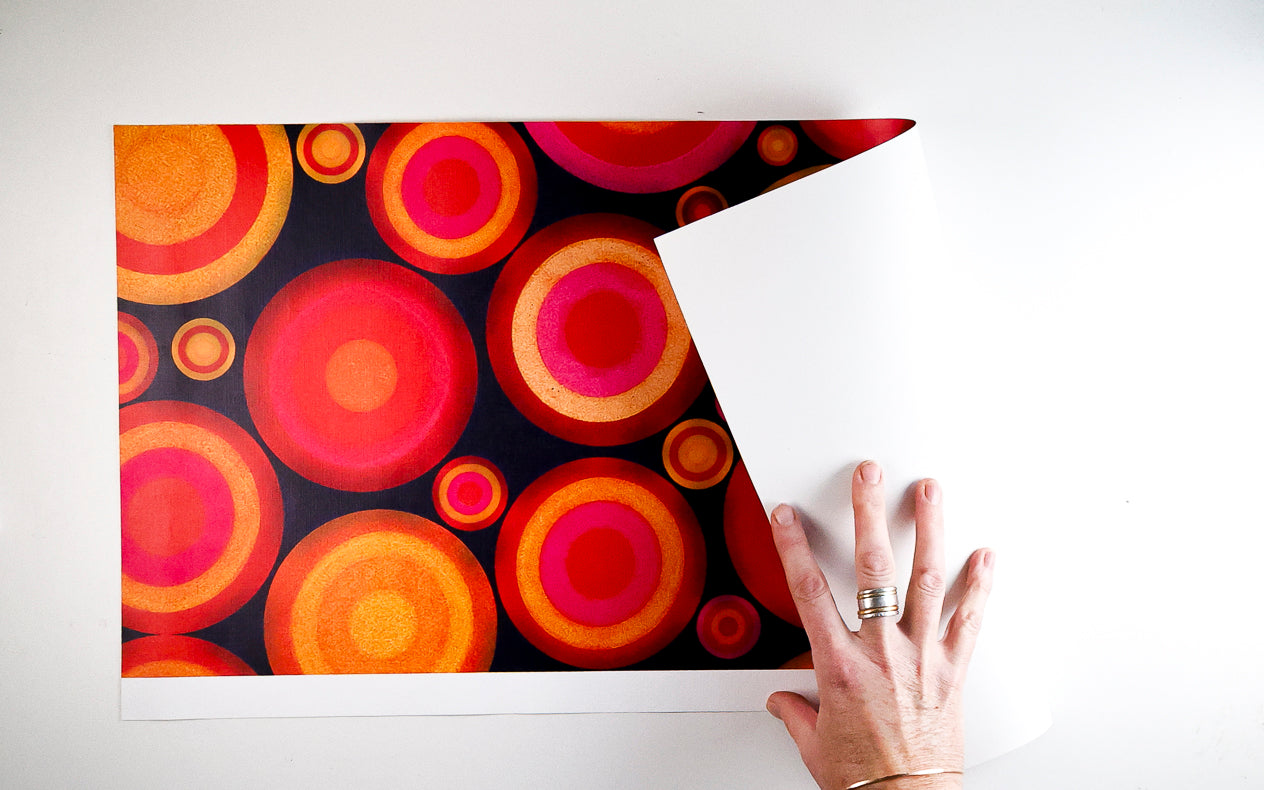 This is a 60cm x 30cm Peel & Stick wallpaper sample in the hot Volcanic Circles design.
